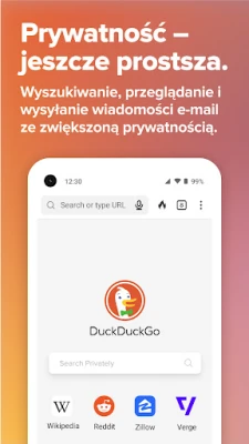 W świecie cyfrowym, gdzie każdy ruch jest potencjalnie śledzony, aplikacja DuckDuckGo oferuje kompleksową tarczę ochronną dostępną na wyciągnięcie ręki. Zastąp swoją codzienną przeglądarkę rozwiązaniem, które gwarantuje prywatność podczas wyszukiwania i przeglądania stron, jednocześnie rozszerzając ochronę na Twoją pocztę e-mail i inne aplikacje. DuckDuckGo to Twoja bramka do spokojniejszego internetu, gdzie Twoje dane pozostają Twoje, bez kompromisów.