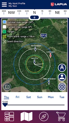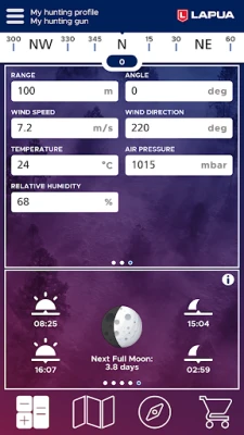 Z Lapua Hunt zyskujesz kompleksowe wsparcie w terenie. Twórz zespoły i monitoruj lokalizacje swoich członków, co usprawnia komunikację i zwiększa zbiorowe bezpieczeństwo. Wbudowany kompas i możliwość mierzenia odległości na mapie to kluczowe funkcje wspierające orientację. Aplikacja inteligentnie integruje dane pogodowe z najbliższej stacji, a także prognozuje kierunek wiatru i zapachu, co jest nieocenione przy planowaniu podejścia. Wszystkie Twoje dane i profile są synchronizowane, umożliwiając dostęp i udostępnianie ich na wielu urządzeniach, co zapewnia ciągłość pracy i spokój ducha, niezależnie od miejsca.
