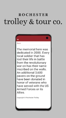To jednak dopiero początek! Zespół Rochester Trolley Tours nieustannie pracuje nad rozszerzeniem naszej oferty, wprowadzając w najbliższej przyszłości jeszcze więcej ekscytujących wypraw tematycznych. Przygoda nigdy się nie kończy. Jeśli masz już zarezerwowany przejazd, pozwól aplikacji wzbogacić Twoją wycieczkę, oferując wciągające narracje i ciekawostki, które ożywią ulice Rochester i sprawią, że każda chwila stanie się niezapomniana.